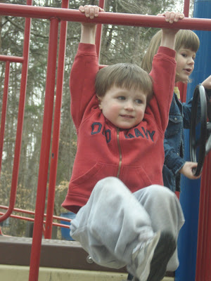 it appears that finally the winter weather is on the way out and warmer weather is moving in. we took the toddlers outside at church this morning. we ate lunch outside at five guys. and we topped it all off with a long trip to the park. it's supposed to be in the 60s all week which makes us happy.